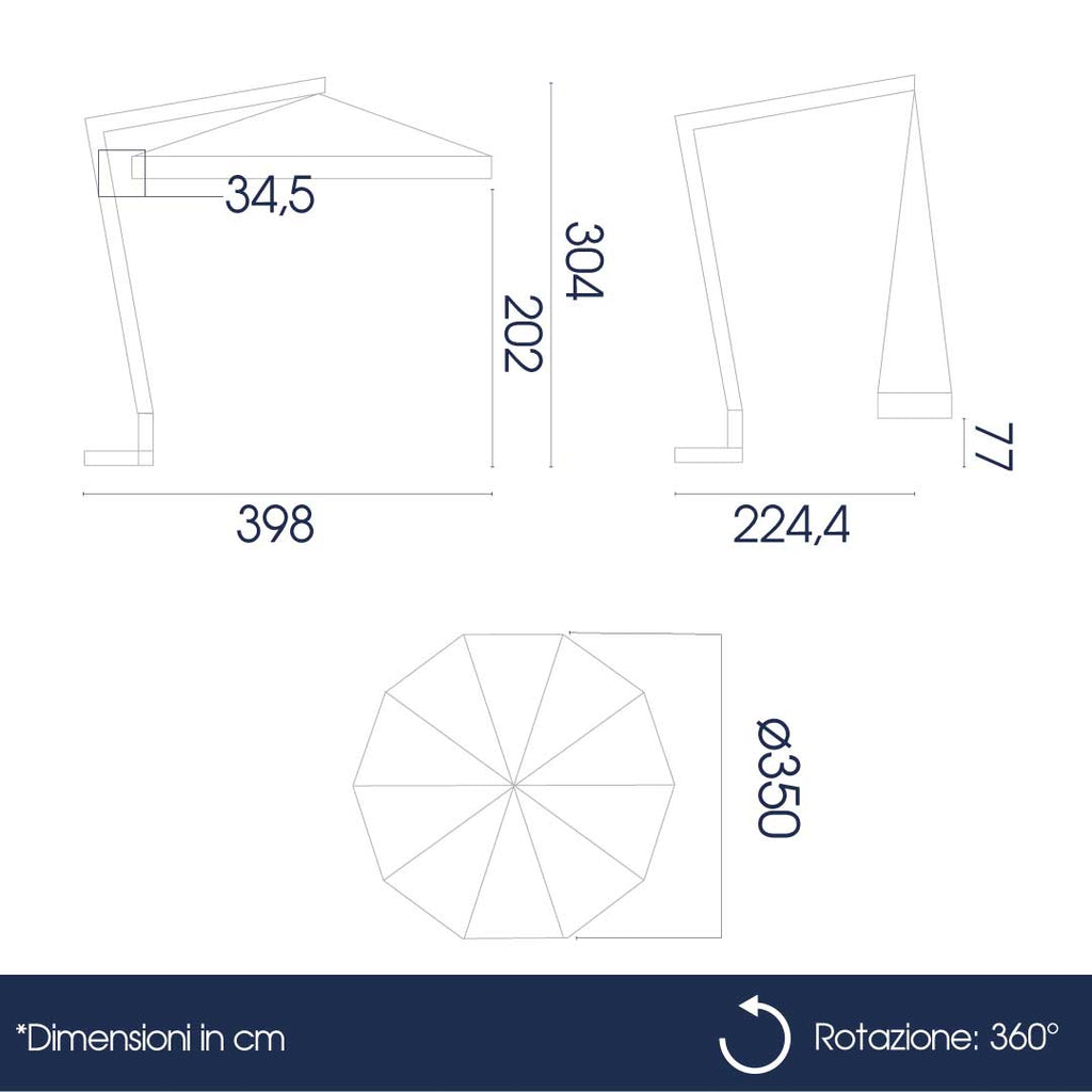 Ombrellone Decentrato da Giardino Ø3,5m Braccio in Legno Ecrù