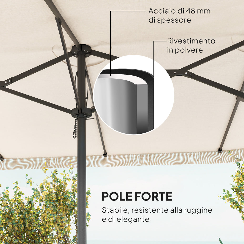 Ombrellone Doppio a 12 Stecche 450x265x260 cm in Acciaio e Poliestere Bianco Crema