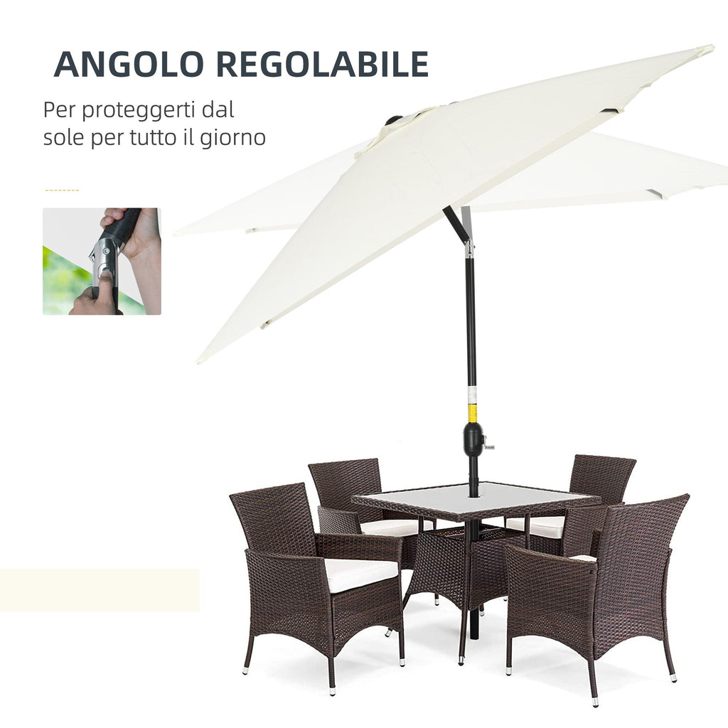 Ombrellone Rettangolare 2x3 m Pieghevole e Regolabile in Alluminio e Poliestere Bianco Crema