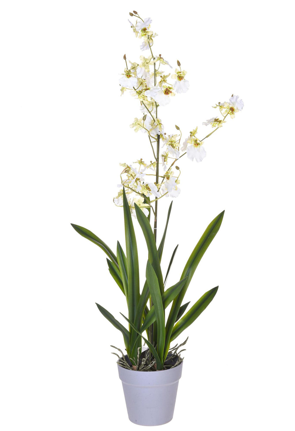 Orchidea Artificiali Oncidium con Vaso Altezza 40 cm Bianco