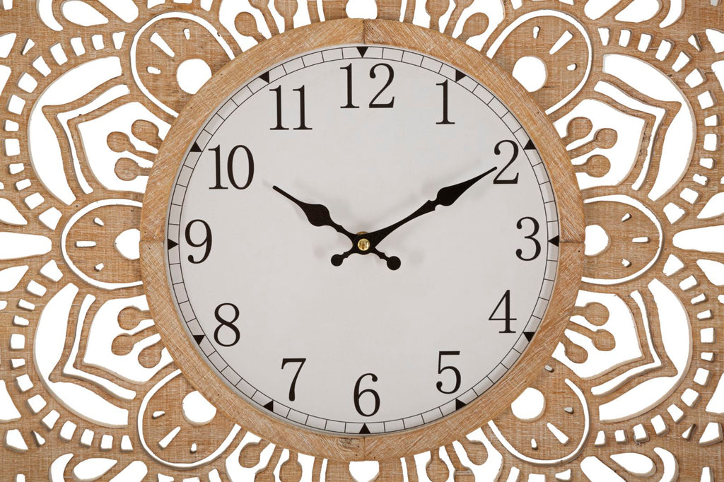 - Orologio da muro Carving Ø 60x4,5 cm in Rattan con cornice intagliata