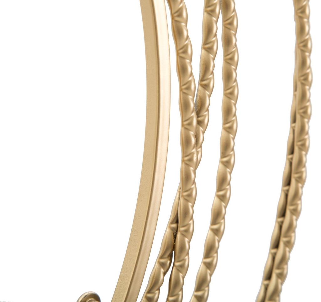 L'orologio da parete in metallo dorato è un pezzo elegante ed eclettico, caratterizzato dalla sua cornice composta da cerchi che si intrecciano in modo irregolare. Questa caratteristica conferisce all'orologio un aspetto unico e originale, perfetto per abbellire qualsiasi tipo di arredamento. Nonostante il caos apparente dei cerchi, la composizione è controllata e armoniosa, creando un interessante contrasto tra disordine e bellezza. Un elemento d'arredo che rappresenta perfettamente lo stile moderno e sofisticato.