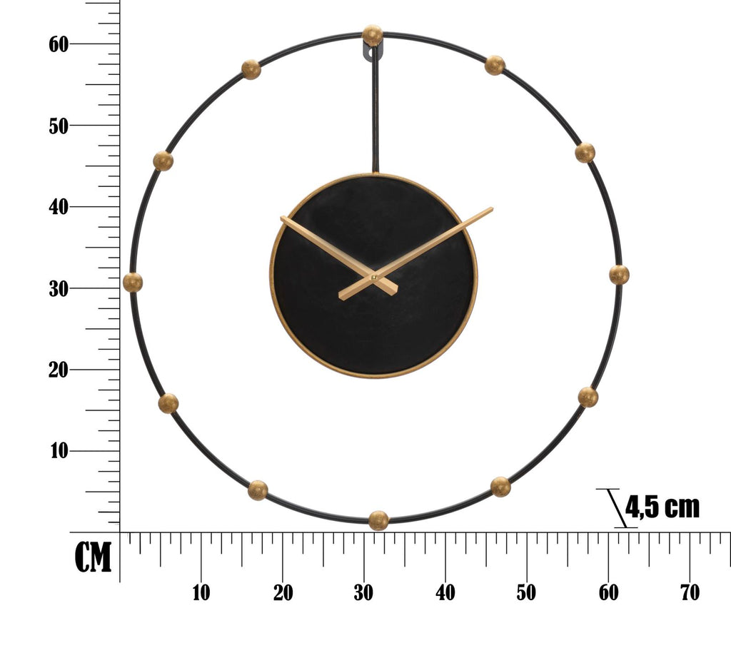 Orologio da parete in metallo nero e dorato. Il design semplice e minimale unito al contrasto nero/oro si sposano alla perfezione ad ogni tipo di arredamento.