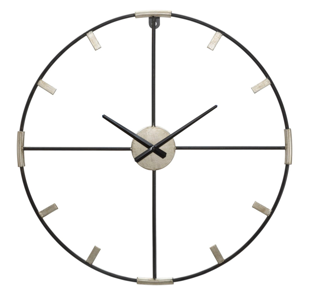 Orologio da parete in metallo nero e argentato. Il design semplice e minimale unito al contrasto argento/oro si sposano alla perfezione ad ogni tipo di arredamento.