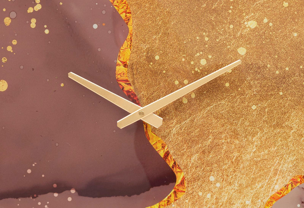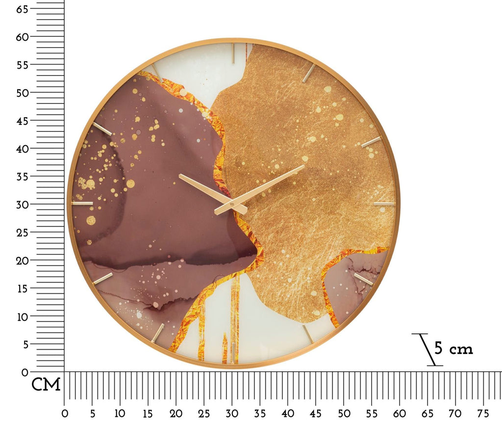 L'orologio da parete rotondo è caratterizzato da una cornice dorata che conferisce un tocco di eleganza e raffinatezza all'ambiente. Il quadrante è decorato con tonalità vivaci e accese, creando un contrasto vibrante tra i colori. Questo orologio non solo fornisce la funzione di indicare l'ora, ma diventa anche un elemento decorativo che aggiunge stile e personalità alla stanza in cui è collocato.