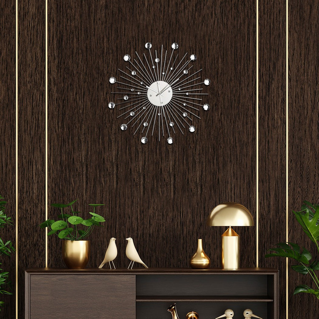 Quest'orologio da parete è realizzato in metallo con cristalli decorativi.