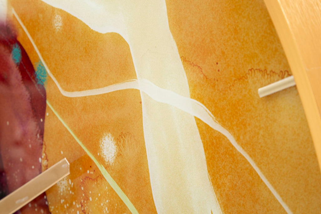 Questo orologio da parete rotondo è caratterizzato da una cornice dorata che conferisce un tocco di eleganza e raffinatezza all'ambiente. Il quadrante, decorato con tonalità vivaci e accese, aggiunge un tocco di allegria e vivacità all'orologio. Questo pezzo d'arredamento è perfetto per chi cerca un complemento d'arredo che non solo svolga la funzione di orologio, ma che sia anche un'elegante opera d'arte che doni colore e luminosità alla stanza.