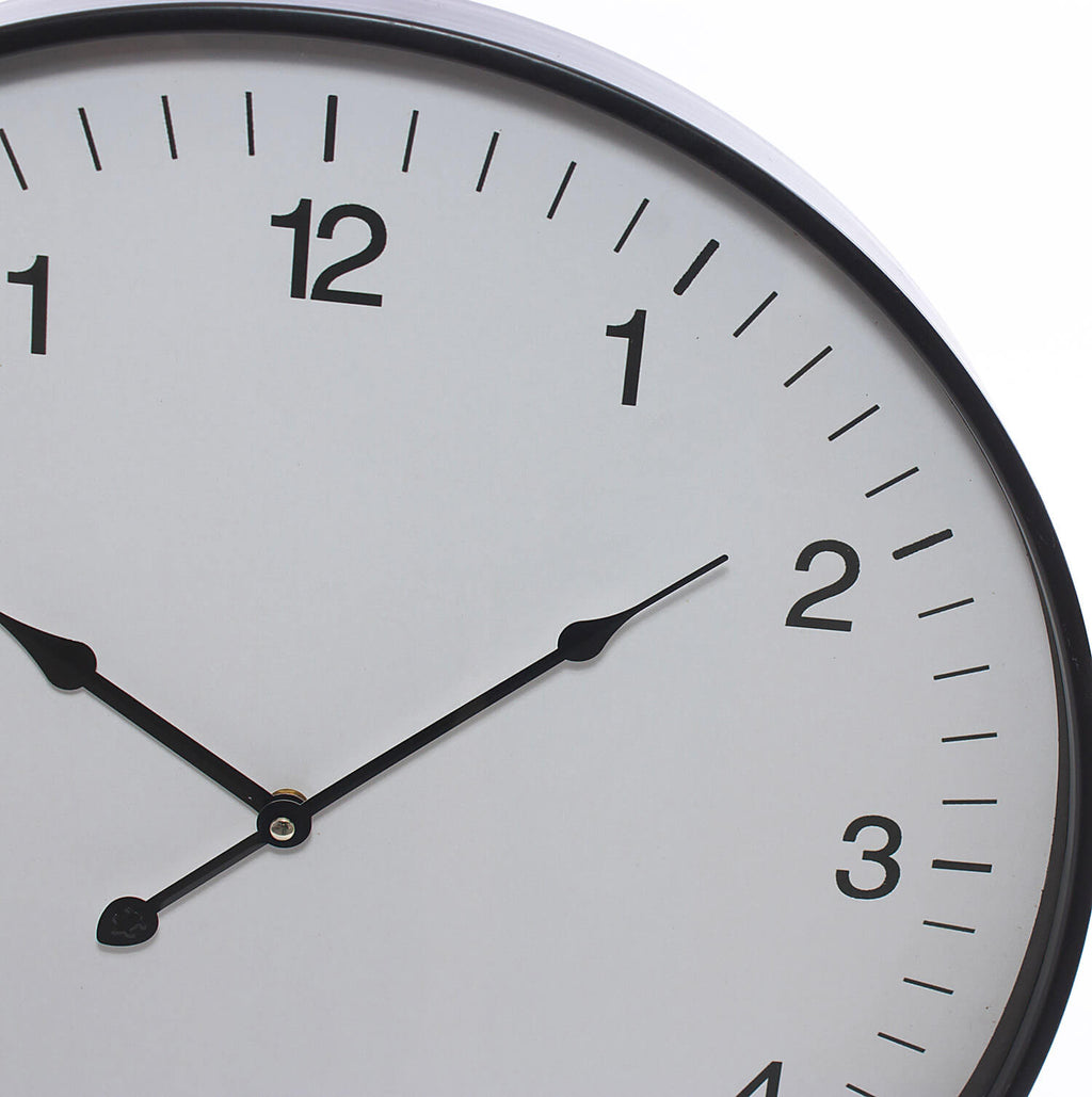 Orologio da parete classico. Cornice nera. Una batteria richiesta, tipo AA, non è inclusa nella fornitura. Consegna senza materiale di fissaggi.