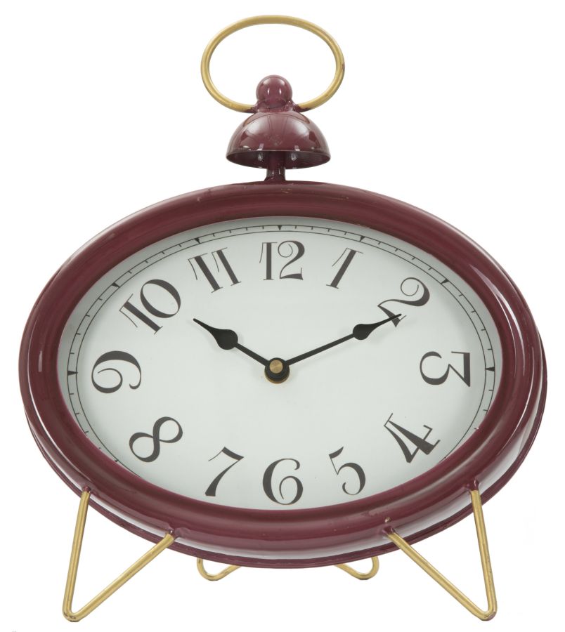 Orologio Glam 28,5x5,5x33,5 cm in Ferro e Vetro Bordeaux e Oro