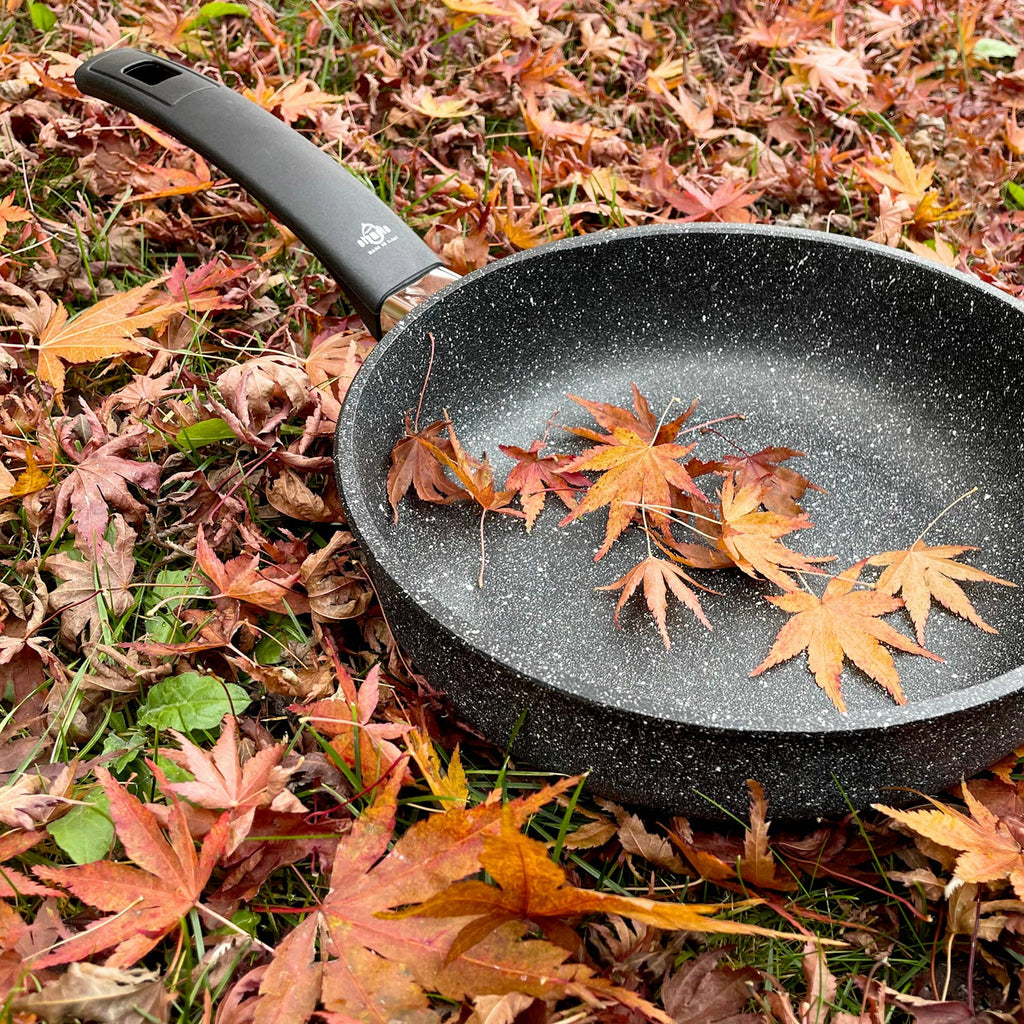 Alta resistenza e massima antiaderenza. Il rivestimento è antiaderente multistrato e rinforzato da particelli minerali, con finitura effetto pietra ;adatto al contatto alimentare per una cucina sana salutare e senza l'utilizzo di grassi.