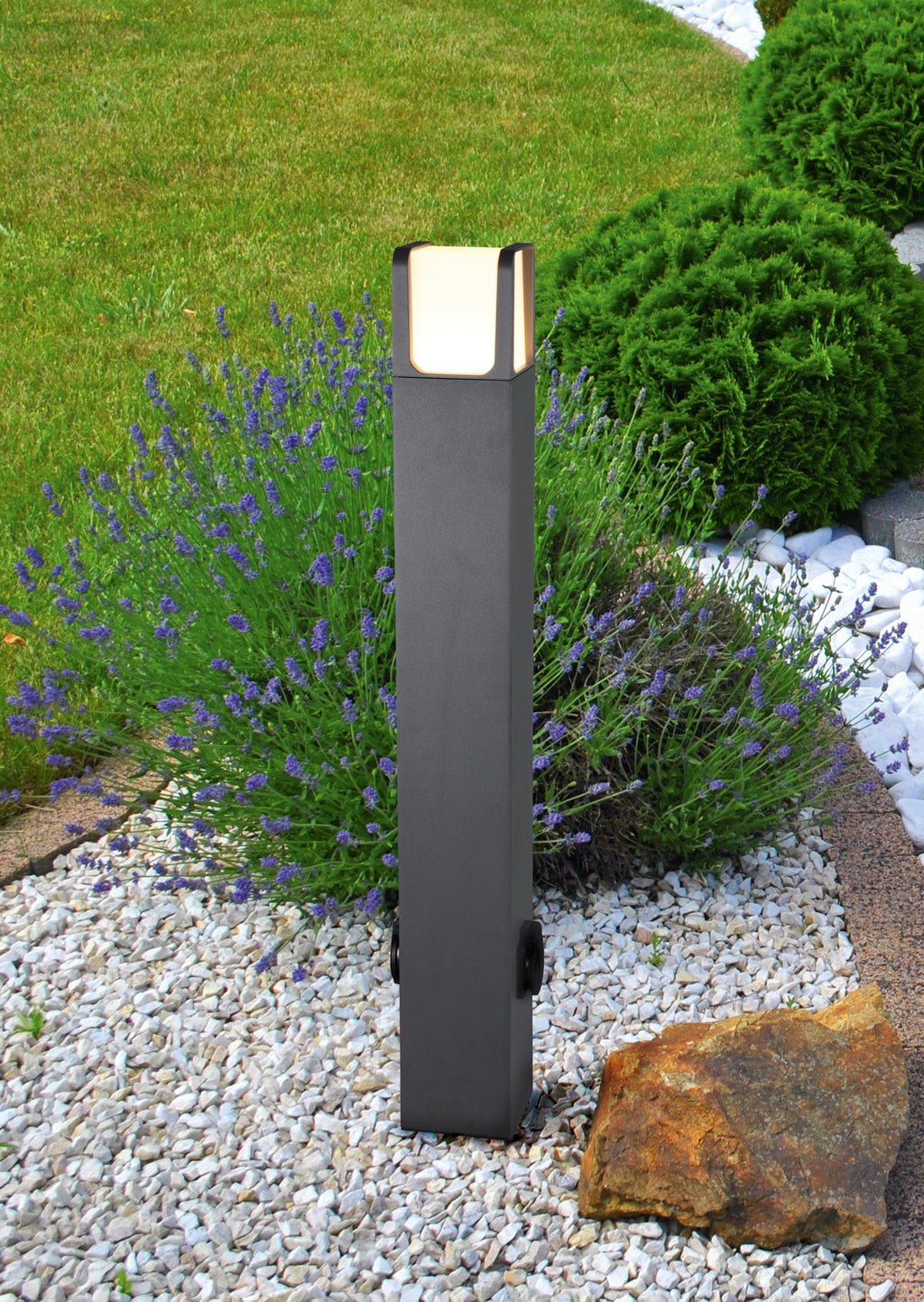 Ebro Palo Alto Led Da Esterno Fusione Di Alluminio Antracite Con 2 Prese Schuko Ip54 H.80Cm