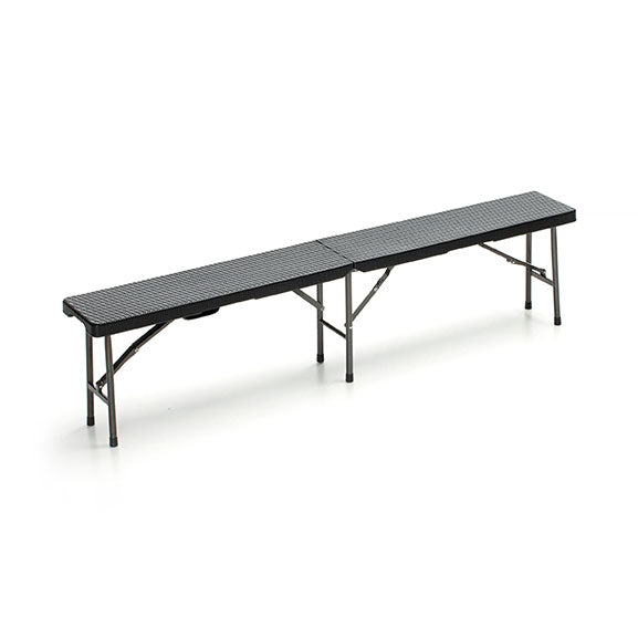 Panca struttura in Ferro verniciata a polvere colore Grigio, seduta in HDPE (Polietilene Alta Densità) colore Nero con trattamento UV, misura cm 182 X 25 X h 43, spessore piano seduta mm. 4.5, sezione tubolari d. mm 22 X 1.0Panca Birreria da Giardino Pieghevole in Rattan Taddei Plastik 180 Nero