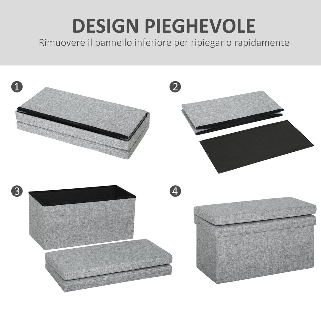 Panca Contenitore 76x50x73 cm con Schienale e Vano da 77L Rivestimento in Tessuto Grigio