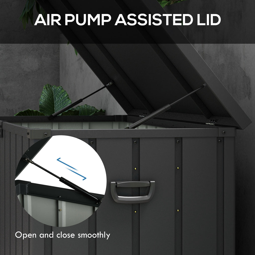 Questa robusta panca contenitore in metallo da 450 litri è sufficiente per contenere accessori da giardino, attrezzi, cuscini e tanti altri oggetti per uso esterno o interni. Realizzata in acciaio spesso, la panca contenitore da esterno è dotata di un coperchio ad apertura facilitata per rendere tutto più semplice e di 2 maniglie e 2 rotelle per poterla spostare facilmente ovunque tu voglia, che sia vuota o piena.