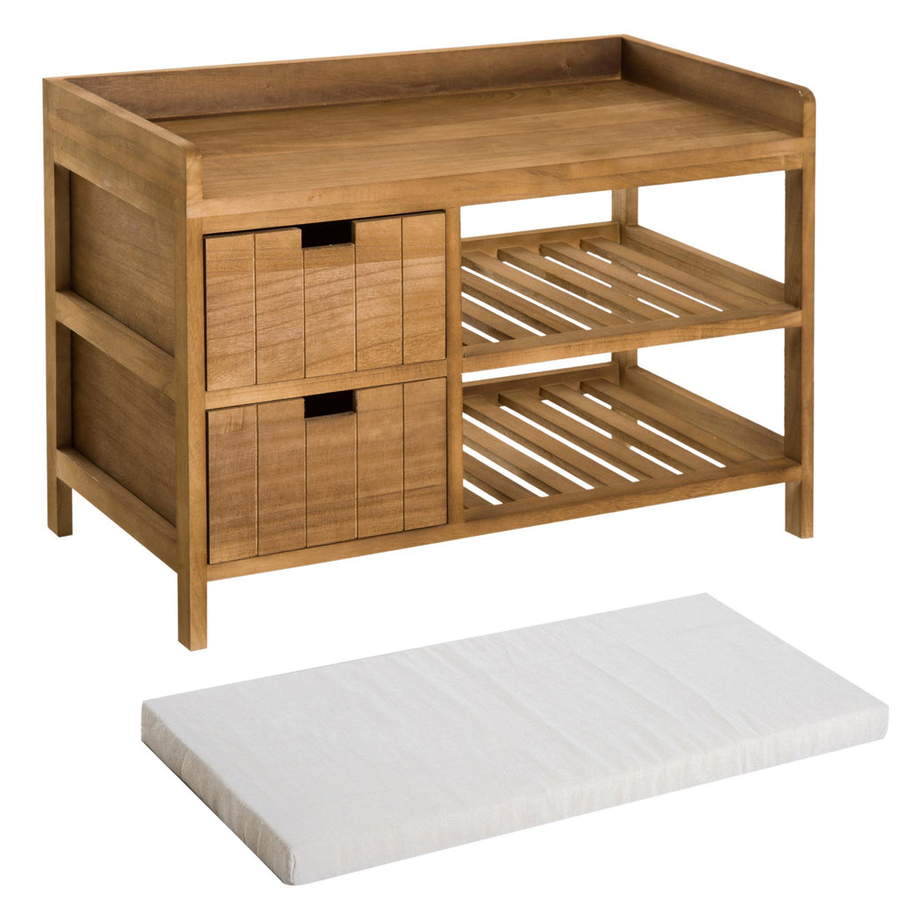 Questa graziosa panca portascarpe in legno si inserisce con facilità in qualsiasi ambiente della casa.