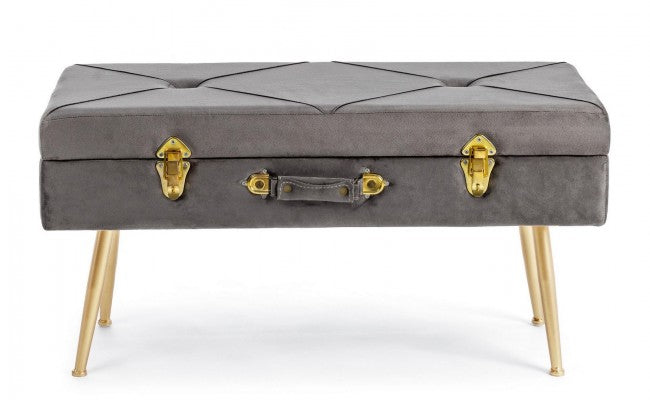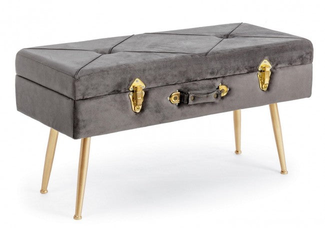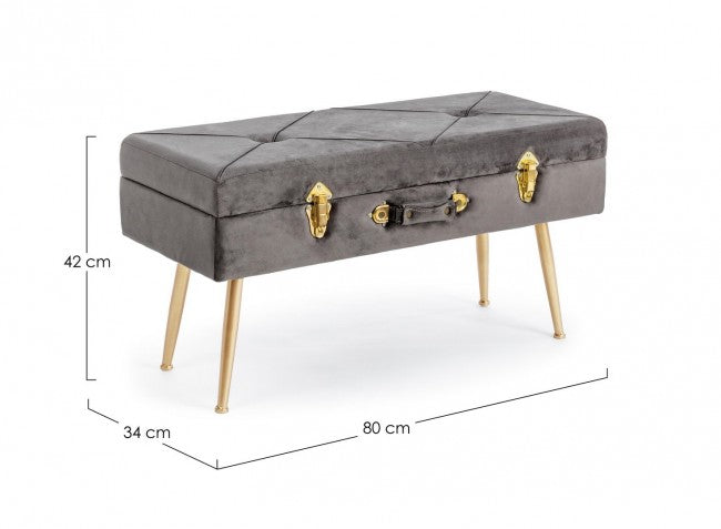 Panca Contenitore Polina in Tessuto effetto Velluto Grigio