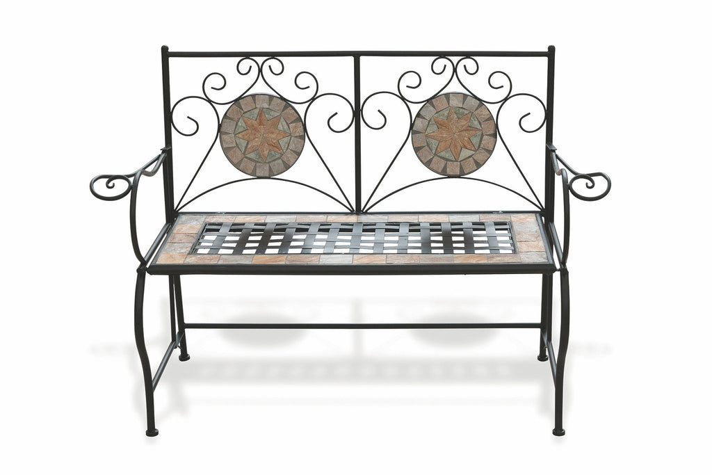 Panca da Giardino 123x53x91 cm in Ferro Battuto con Mosaico Soriani Cipro