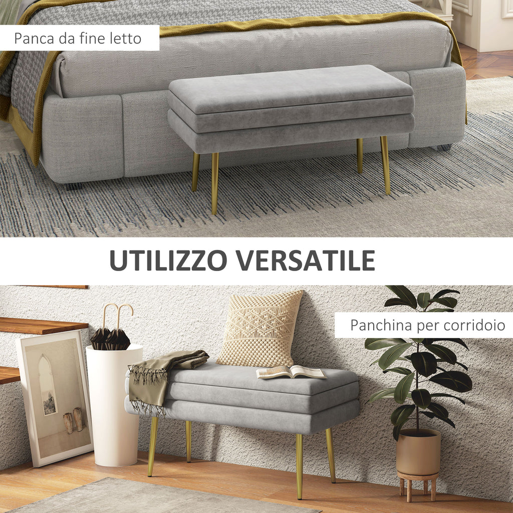 - Panca da letto in stile elegante con gambe in tonalità oro