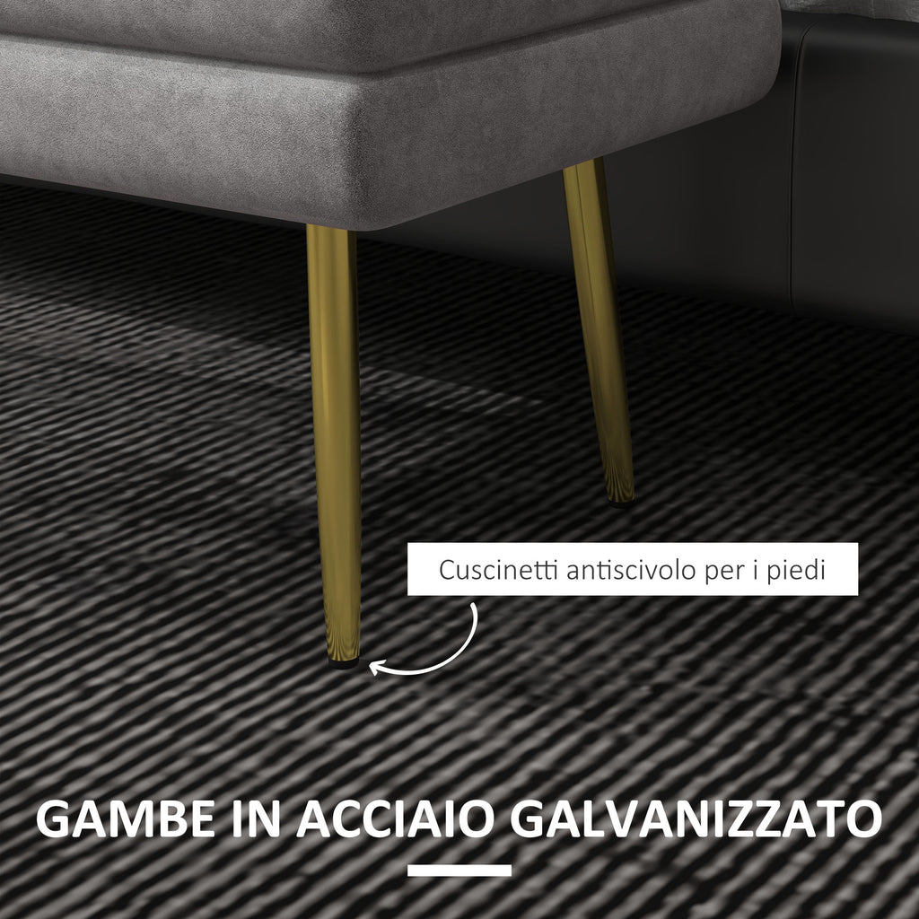- STRUTTURA STABILE: Questa panca fondo letto è dotata di 4 gambe in acciaio galvanizzato con finitura dorata che possono sostenere fino a 120 kg di peso. I piedini antiscivolo aggiungono invece ulteriore stabilità e impediscono al pavimento di graffiarsi