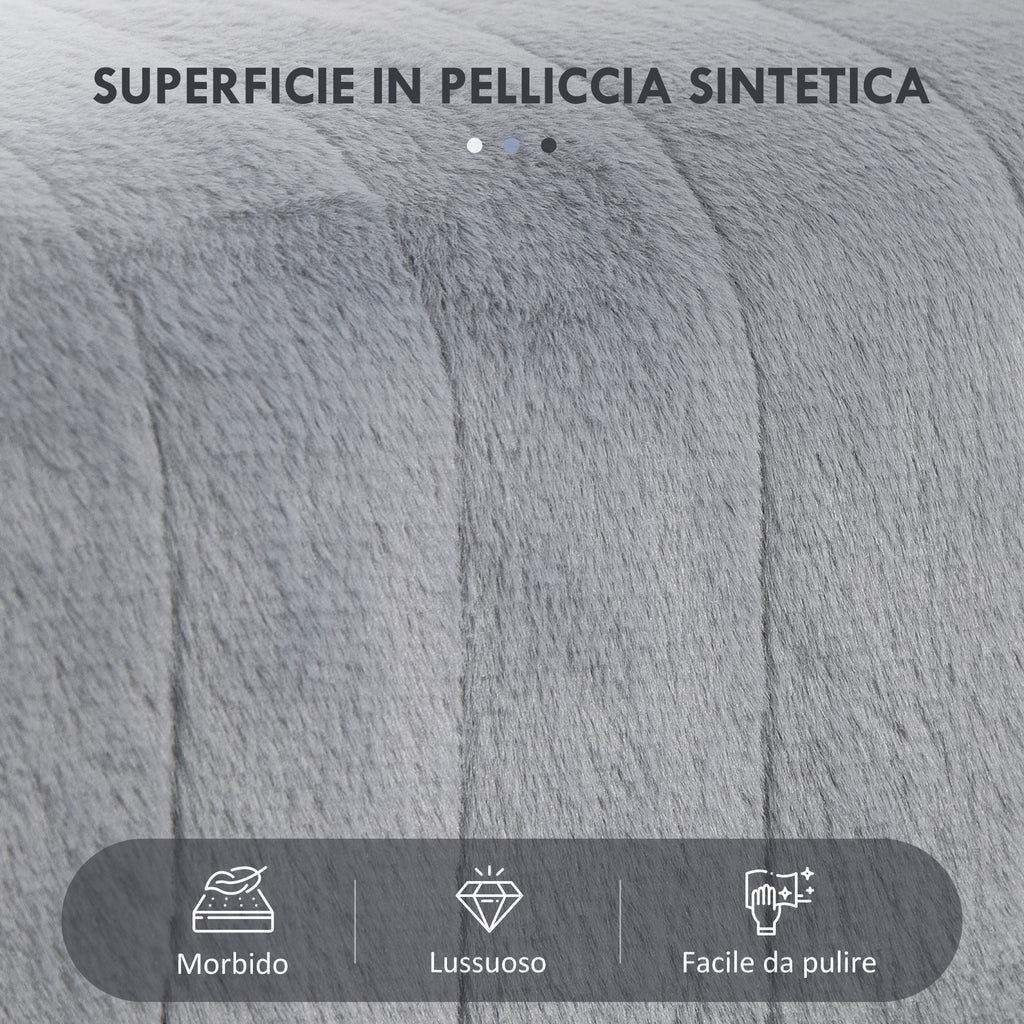 Panca Fondo Letto Imbottita 82x30x47 cm Pelliccia Sintetica Grigia