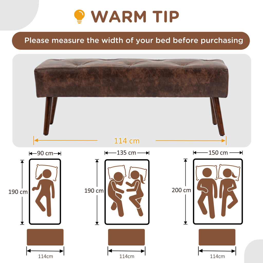 Panca Fondoletto 114x38x42 cm in Similpelle Marrone