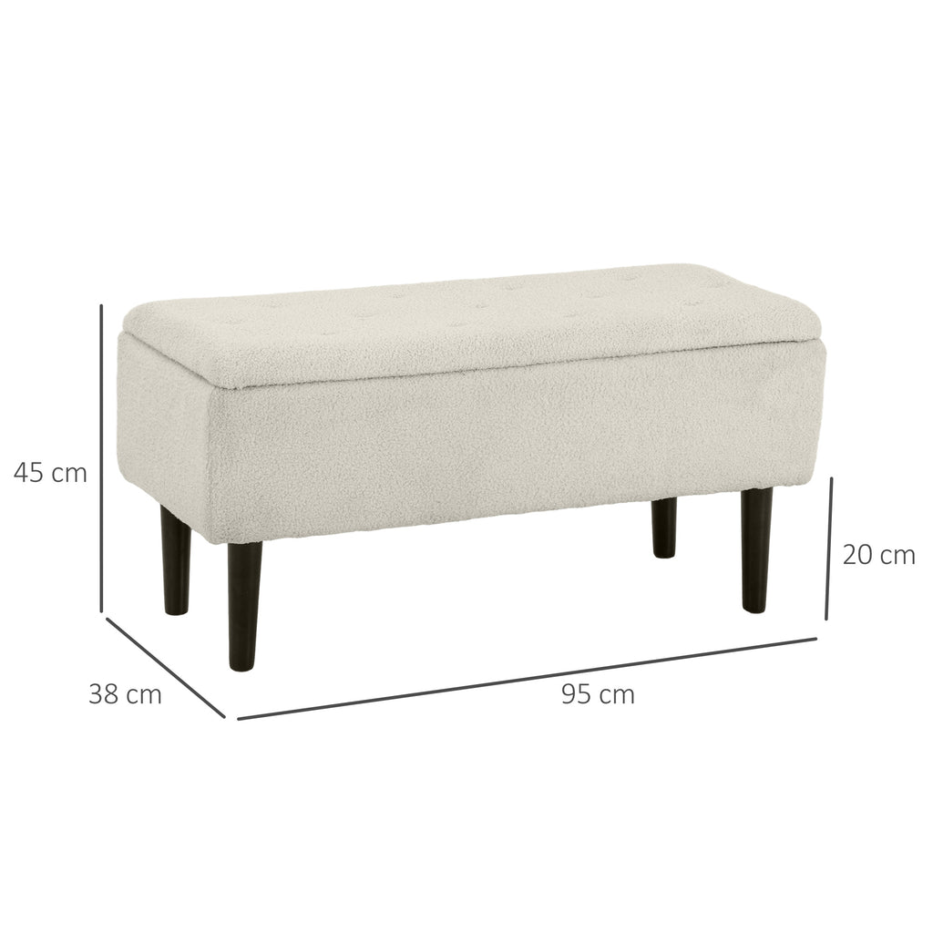 Panca Fondoletto con Vano Contenitore da 47L 95x38x45 cm Rivestimento Bouclé Beige