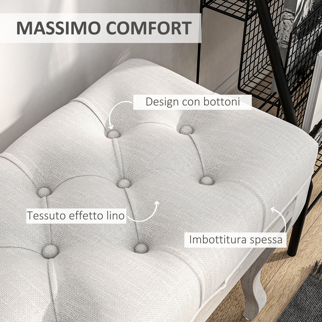 Panca Fondoletto Stile Vintage 110x37x49 cm in Tessuto Effetto Lino Bianco Crema