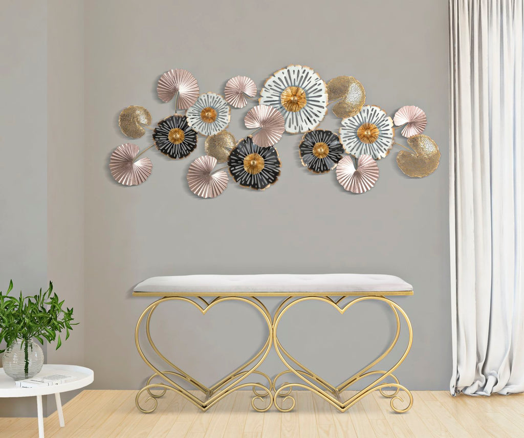 Panca Heart Crema 105x37,5x51,5 cm in Ferro e MDF e Spugna E Poliestere Oro e Rosa