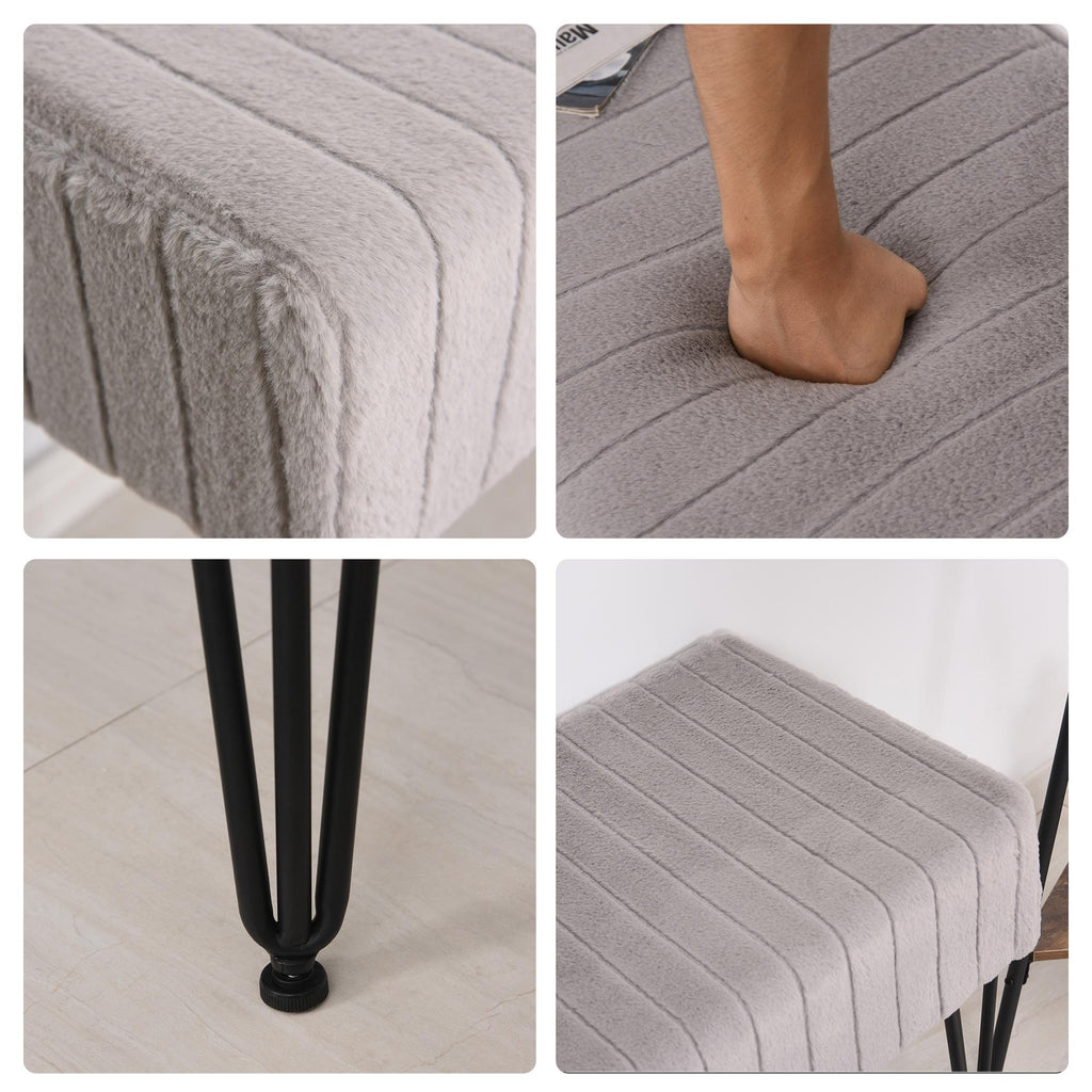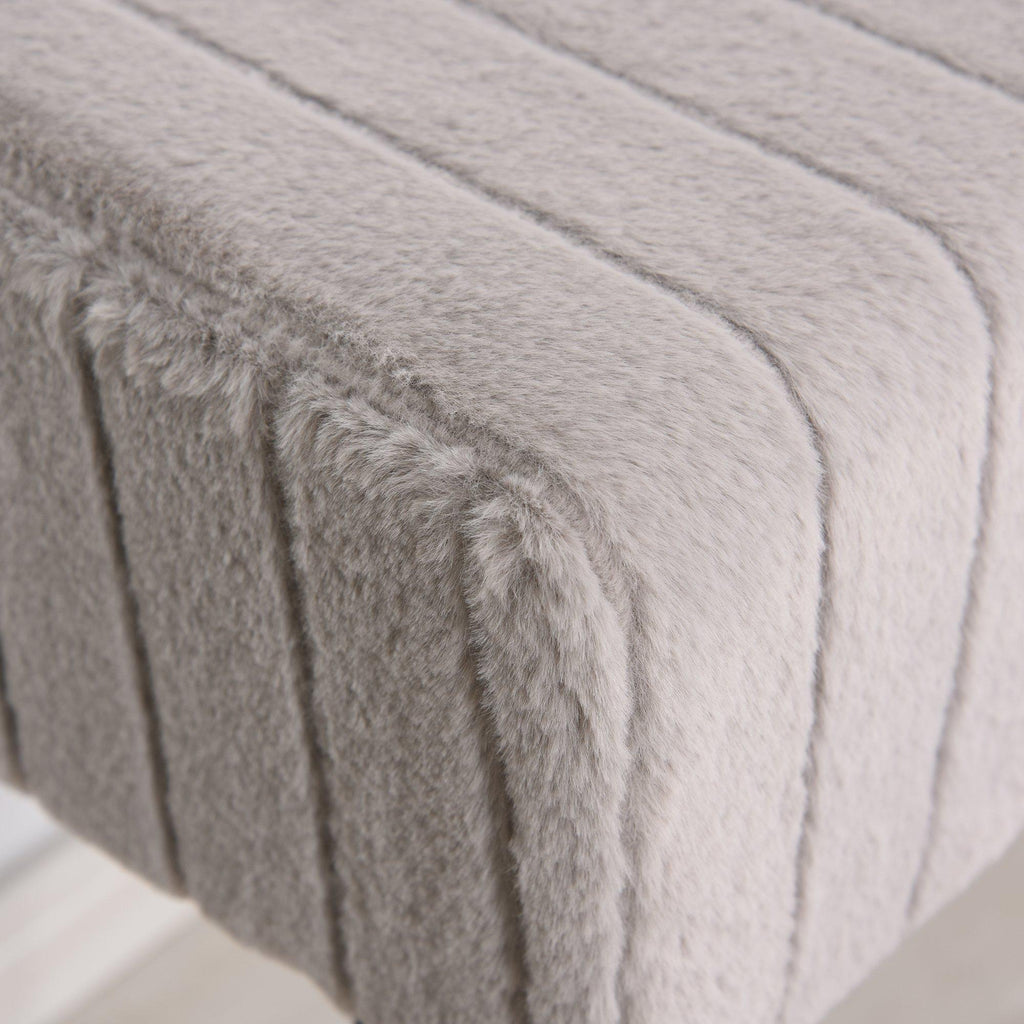 Varca la porta d'ingresso e fatti coccolare! Questa panca da interni ha un morbido rivestimento in peluche e un solido telaio in metallo nero. La soluzione perfetta per arredare l'ingresso con stile, e per avere un punto d'appoggio per cambiare le scarpe prima di uscire.