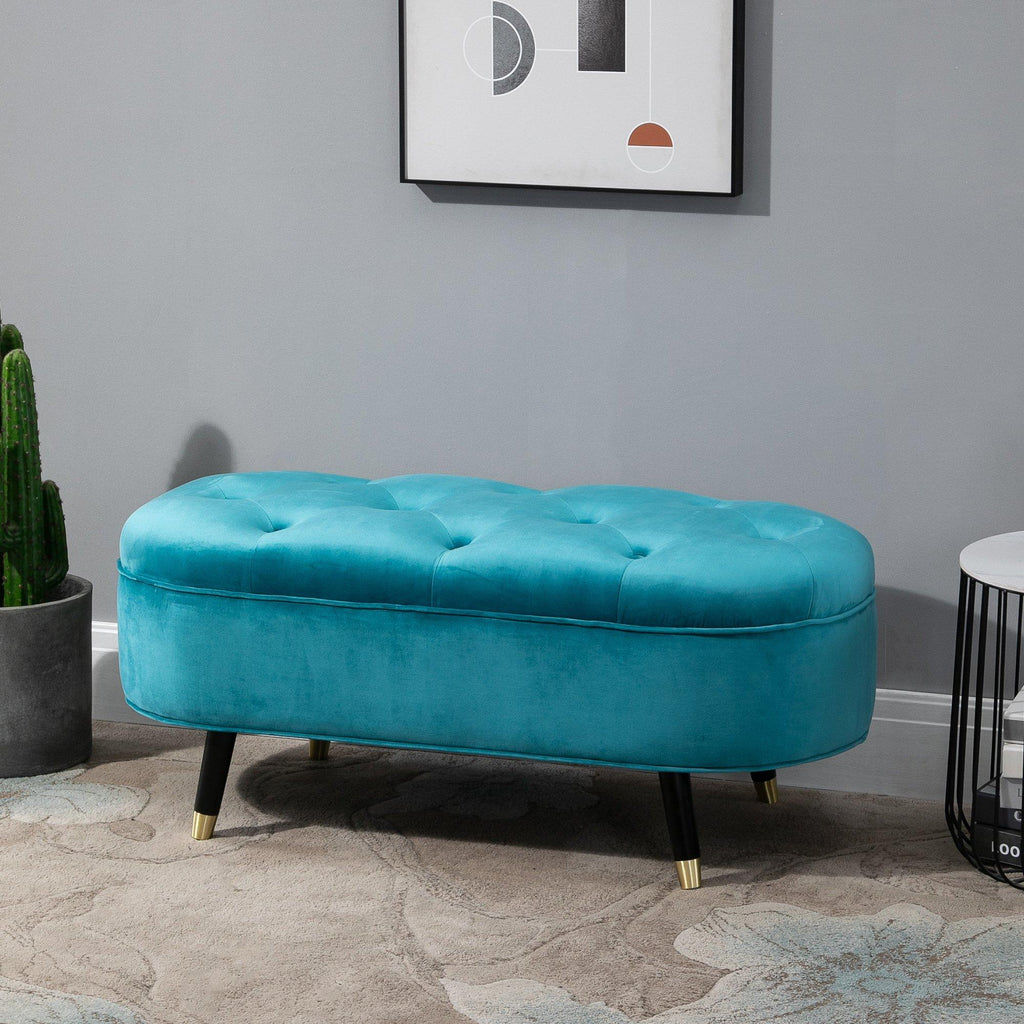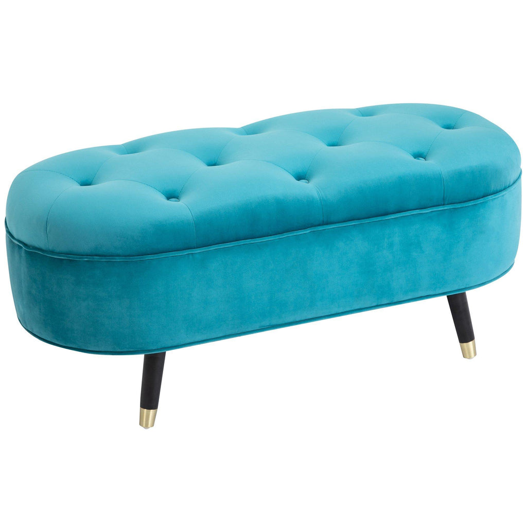 Dai colore alla tua casa con questa panca da interni ! Costruita con un telaio e gambe in legno, ha un'ampia seduta imbottita e rivestita con velluto azzurro. Perfetta per vivacizzare la zona ingresso, la camera da letto o il soggiorno, puoi usarla come punto d'appoggio per indossare le scarpe, come panca per il pianoforte o, semplicemente, per concederti un momento di relax in soggiorno.