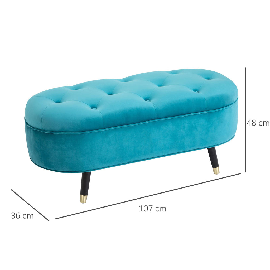 Panca Imbottita in Tessuto Velluto 107x36x48 cm Blu