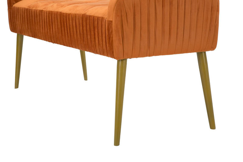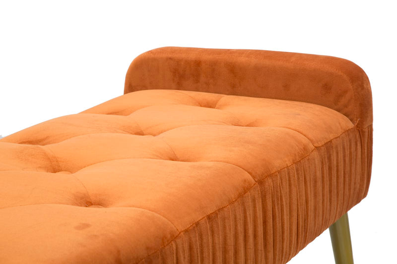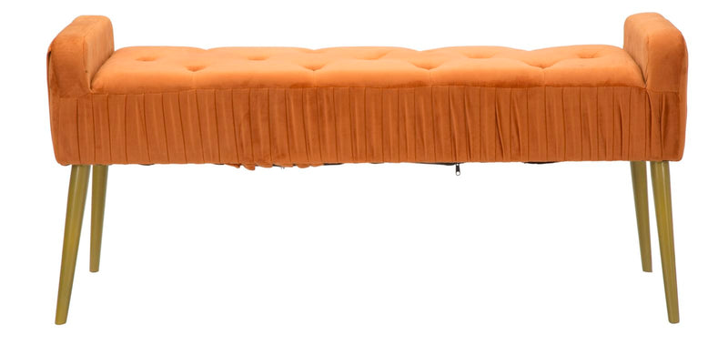 Panca in legno e velluto color ruggine. Lo stile glamour impreziosisce gli interni moderni conferendogli un'atmosfera regale e lussuosa.Splendide sedute dalla base dorata che conferiscono un tocco di nostalgica eleganza al tuo arredo.