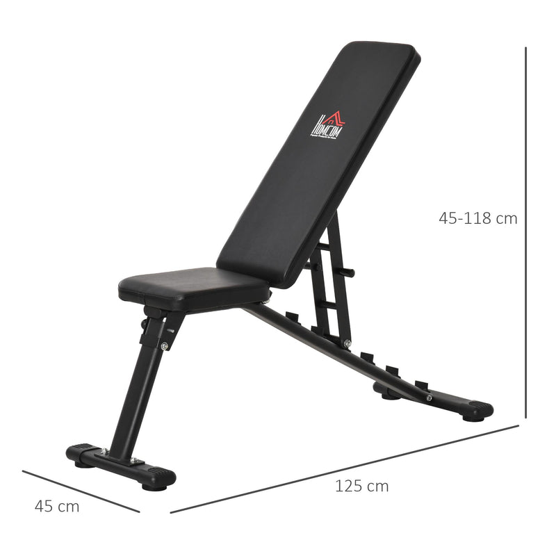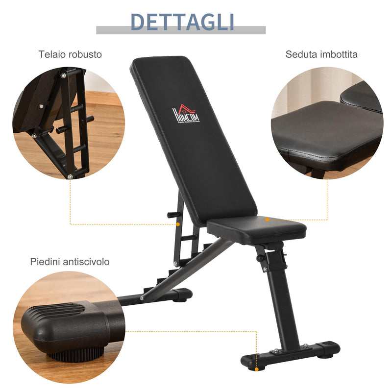 - REGOLABILE: Lo schienale della panca multifunzione può essere regolato a 93°, 117°, 133°, 146°, 160°, 180° e la seduta è regolabile in altezza da 45-118cm.
