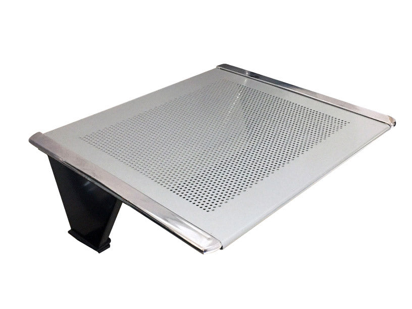 Tavolino in acciaio traforato di spessore 1,5 mm di color argento da montare al posto di una seduta.