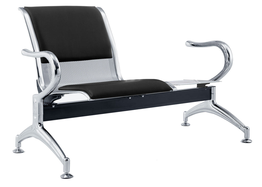 Panca per Sala Attesa 1 Posto da Ufficio con Cuscino e Tavolino in Acciaio e Similpelle Argento/Nero