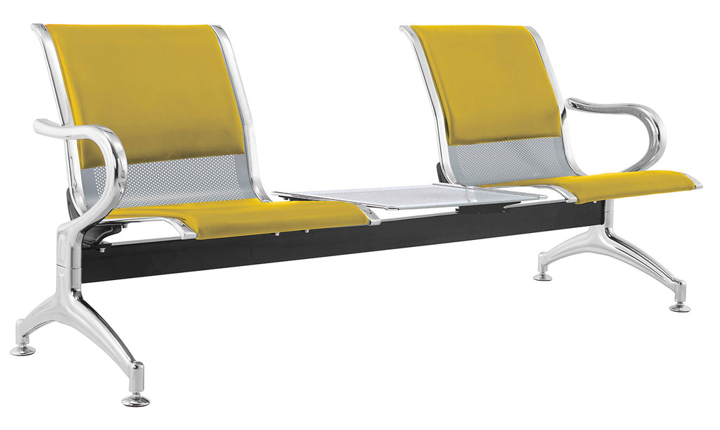 Panca per Sala Attesa 2 Posti da Ufficio con Cuscino e Tavolino in Acciaio e Similpelle Argento/Senape