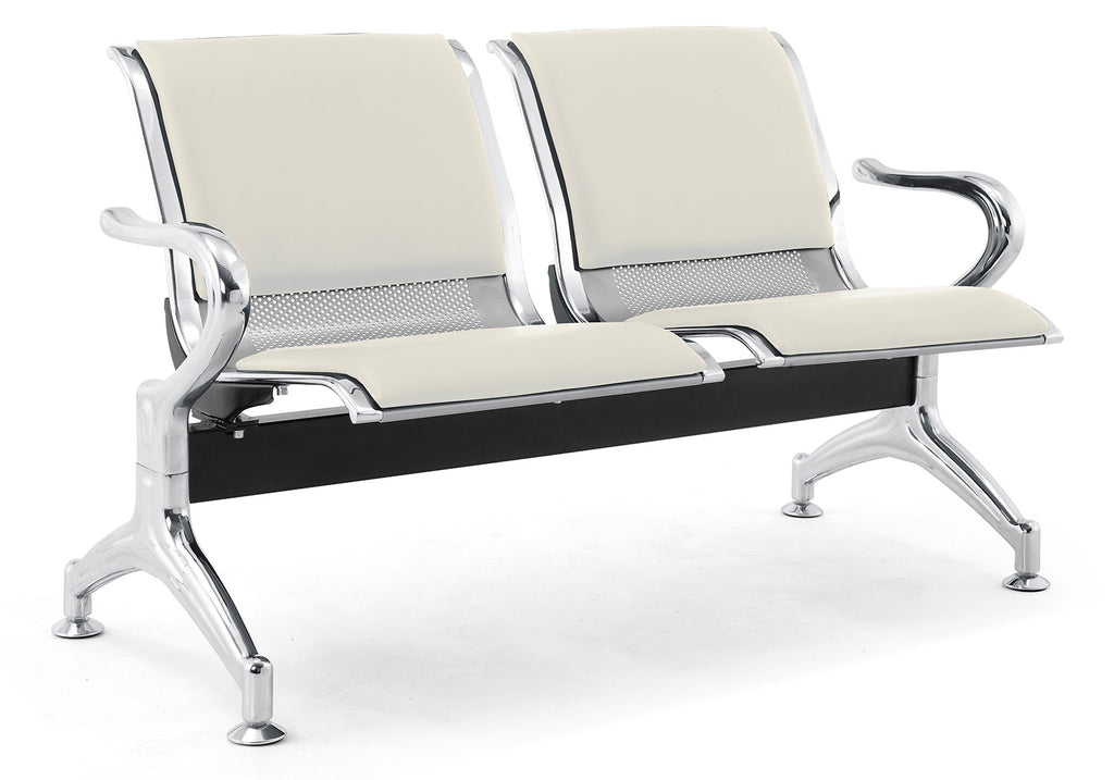 Panca per Sala Attesa 2 Posti da Ufficio con Cuscino in Acciaio e Similpelle Argento/Avorio
