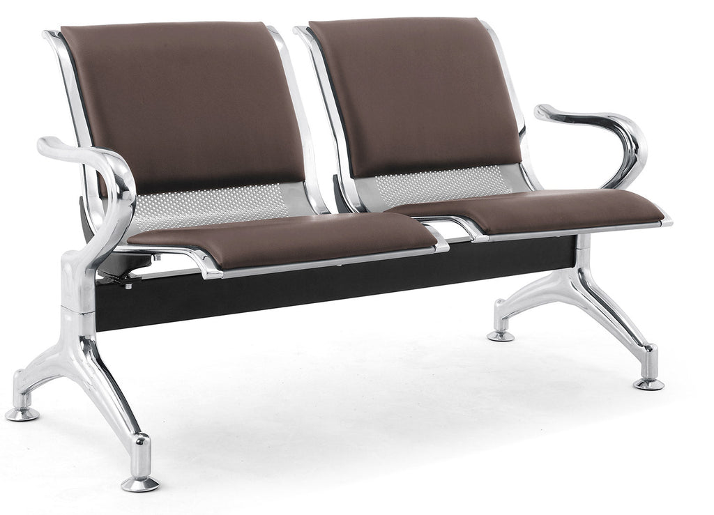 Panca per Sala Attesa 2 Posti da Ufficio con Cuscino in Acciaio e Similpelle Argento/Marrone Scuro