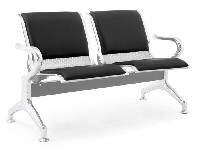 Panca per Sala Attesa 2 Posti da Ufficio con Cuscino in Acciaio e Similpelle Argento/Nero