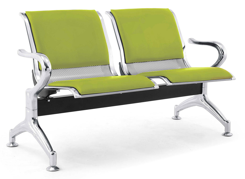 Panca per Sala Attesa 2 Posti da Ufficio con Cuscino in Acciaio e Similpelle Argento/Pistacchio