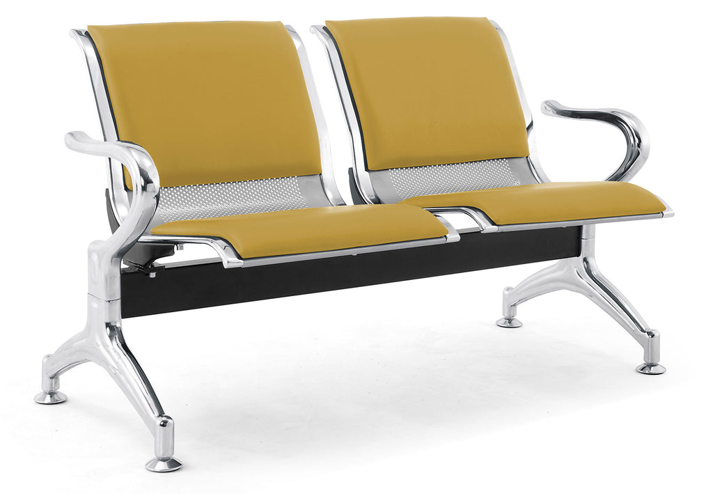 Panca per Sala Attesa 2 Posti da Ufficio con Cuscino in Acciaio e Similpelle Argento/Senape