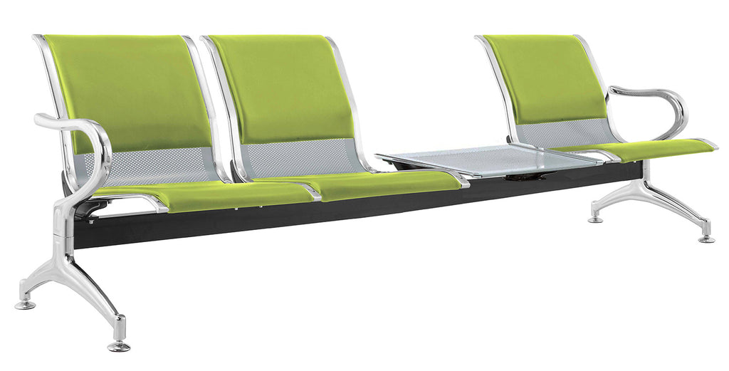 Panca per Sala Attesa 3 Posti da Ufficio con Cuscino e Tavolino in Acciaio e Similpelle Argento/Pistacchio