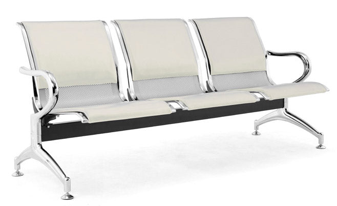 Panca per Sala Attesa 3 Posti da Ufficio con Cuscino in Acciaio e Similpelle Argento/Avorio