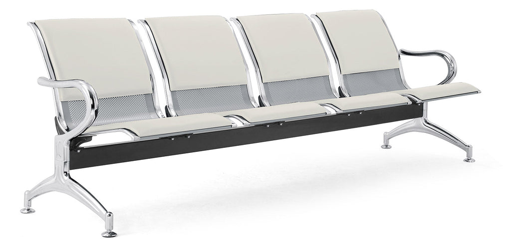 Panca per Sala Attesa 4 Posti da Ufficio con Cuscino in Acciaio e Similpelle Argento/Avorio