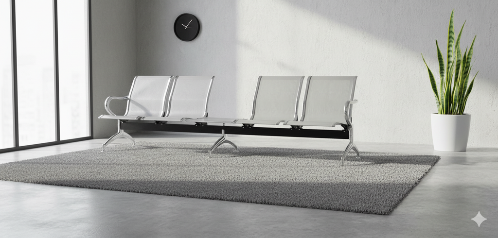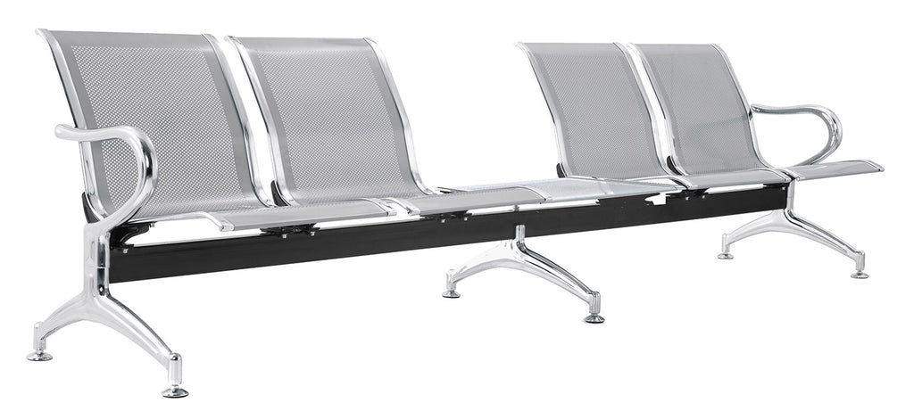Panca per Sala Attesa 4 Posti da Ufficio con Tavolino in Acciaio Argento