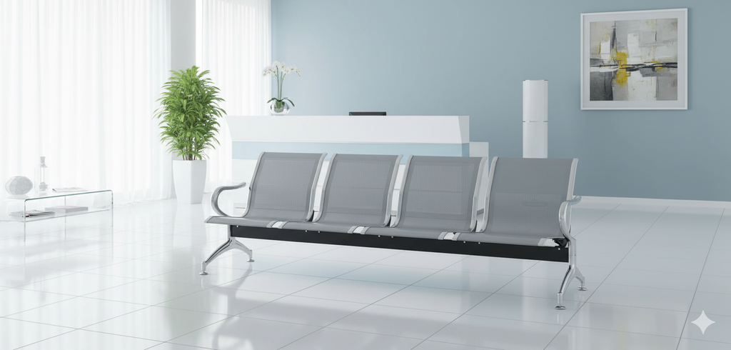 Panca per Sala Attesa 4 Posti da Ufficio in Acciaio Argento
