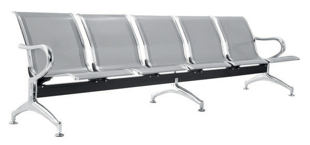 Panca per Sala Attesa 5 Posti da Ufficio in Acciaio Argento