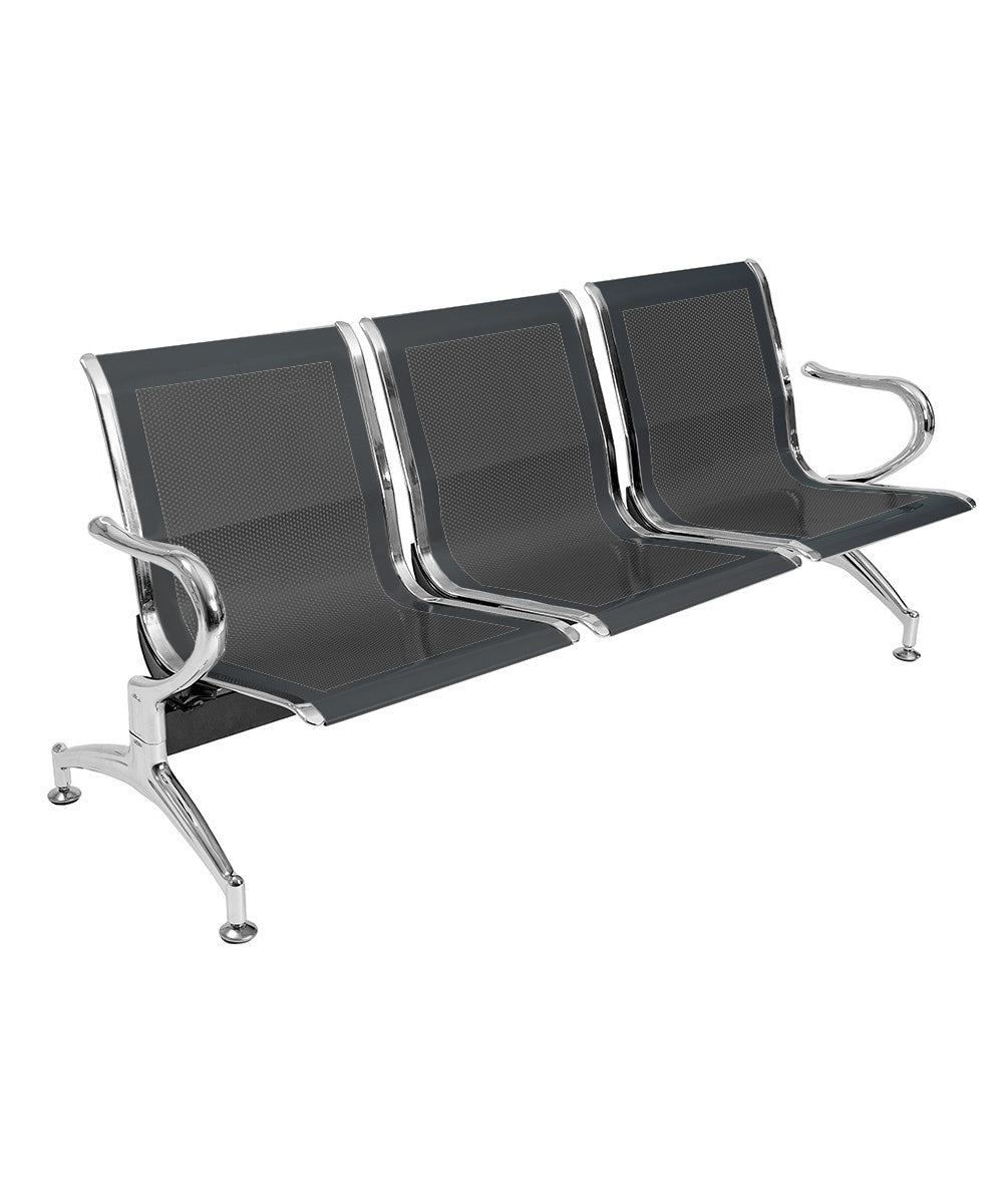 Panca per Sala d'Attesa 3 Posti in Acciaio Nero