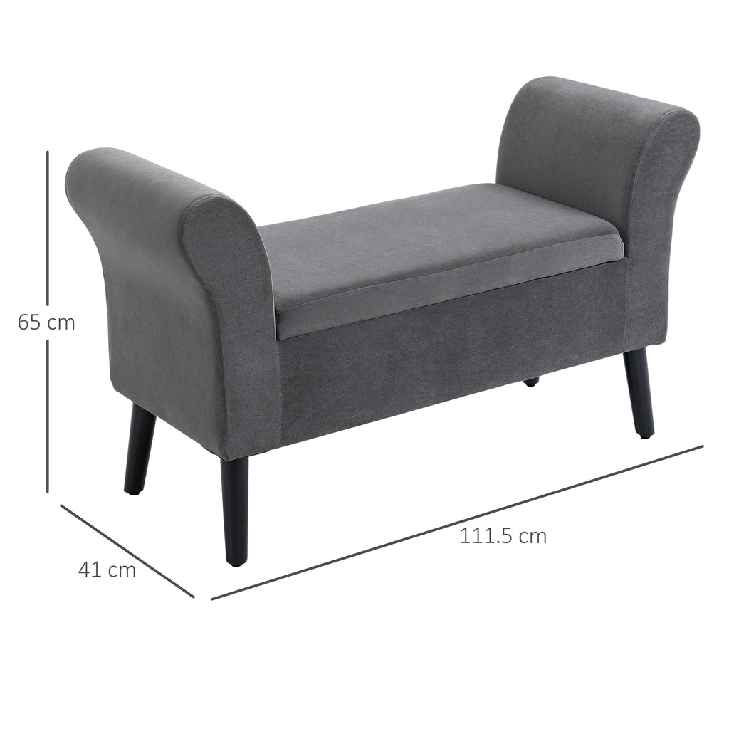 Panca Pouf Contenitore Imbottita 111,5x41x65 cm in Tessuto Grigio