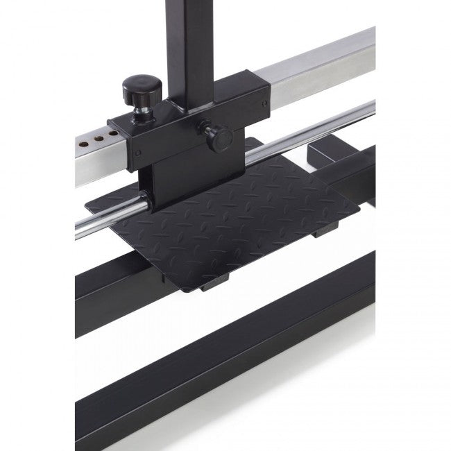 Il carrello è regolabile verticalmente su ben 18 livelli e orizzontalmente in 13 livelli.